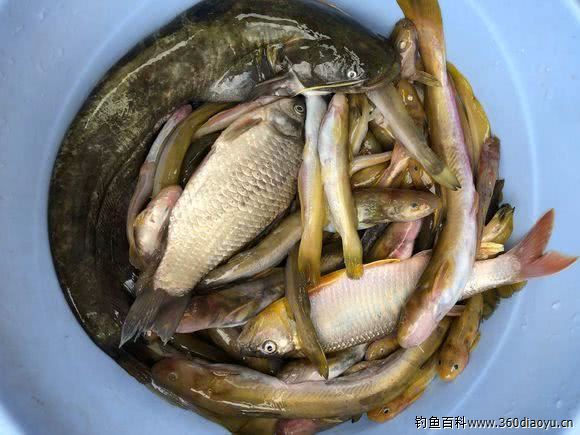 最后的鱼获,各种各样的鱼都有,还钓了一条漂亮的野生大鲶鱼。一般江水浑浊的时候,正是钓鲶鱼的好时候,不过最近可能刚刚涨水,鲶鱼都还没有出来活动呢!这鱼这种小鲶鱼,数量却相当的多,个人感觉比大鲶鱼还要美味,可惜就是个头太小。鲫鱼的话就钓了几条,另外一种彩色的鱼,有多少钓友认识呢?也是相当的美味啊!