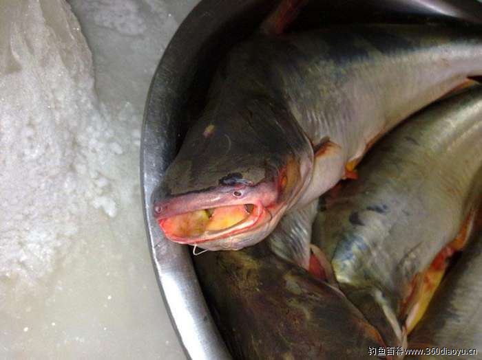 因为我是用双钩我在漂动的时侯猛的一拉竿,一个钩子上是一条鲫鱼。另一个钩子居然钩住那条淡水鲨鱼的肚子了。300百块钱5个小时居然只钓了一条淡水鲨鱼和四斤鲫鱼。