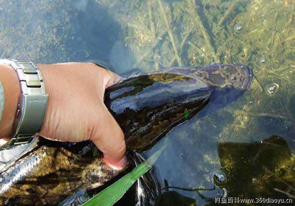 双手握鱼竿,将活泥鳅饵慢慢放在黑鱼做窝的草洞里或是小黑鱼群边。在鱼卵的边缘上下提动几次。黑鱼发现来犯之敌会迅速攻击,毫不犹豫将泥鳅吞入口中。黑鱼咬钩后吐出一串气泡时,及时提竿基本是十拿九稳。