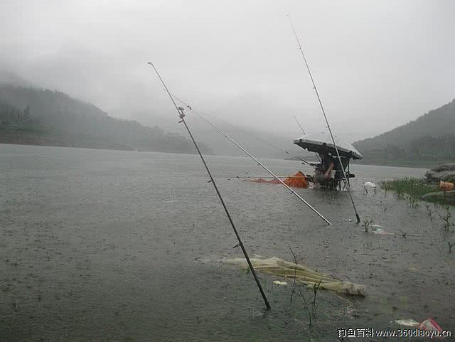 下中雨,水中氧含量高鱼儿活跃,适合于年青和身体健康的中年人垂钓。