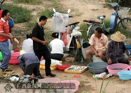 (图片)护城河里撒网上百人夜半捕鱼忙