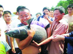 (图片)铜盘河内3天钓起3条大胡子鱼